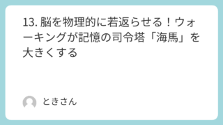 ウォーク・ラン系 13. 脳を物理的に若返らせる!ウォーキングが記憶の司令塔「海馬」を大きくする