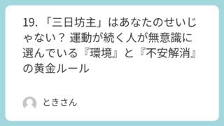 19. 「三日坊主」はあなたのせいじゃない? 運動が続く人が無意識に選んでいる『環境』と『不安解消』の黄金ルール