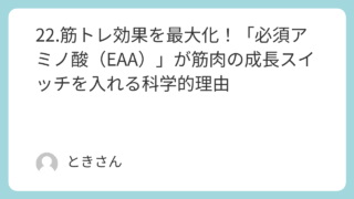 22.筋トレ効果を最大化!「必須アミノ酸(EAA)」が筋肉の成長スイッチを入れる科学的理由
