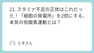 21. スタミナ不足の正体はこれだった!「細胞の発電所」を2倍にする、本気の有酸素運動とは?