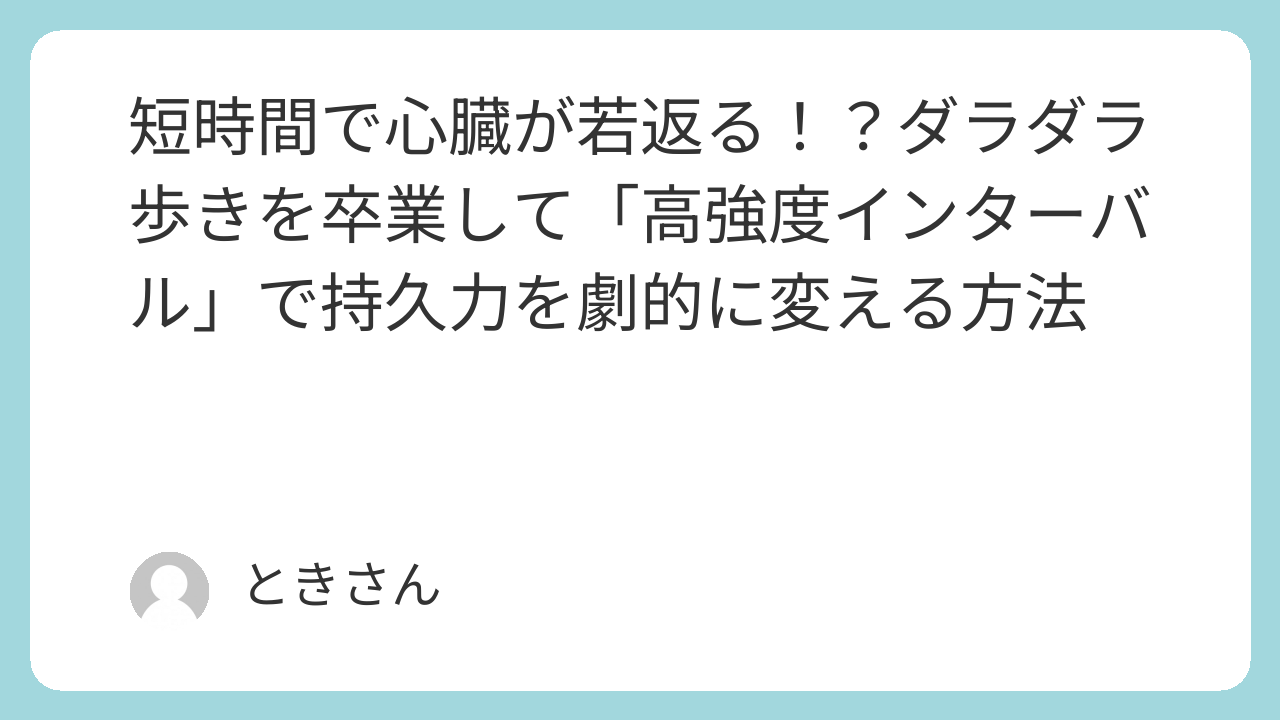 10. 短時間で心臓が若返る!?ダラダラ歩きを卒業して「高強度インターバル」で持久力を劇的に変える方法