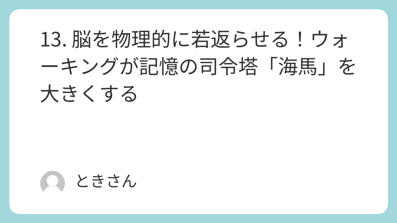これまで、脳の細胞は加齢とともに減る一方で、再生しないと考えられてきました。しかし、この研究は、脳には「可塑性(かそせい)」、つまり経験や活動に応じて変化する能力があることを証明しました。海馬の縮小を「目減りしていく貯金」とするなら、有酸素運動はその口座に「利息」を付け、残高を増やしてくれる投資のようなものです。