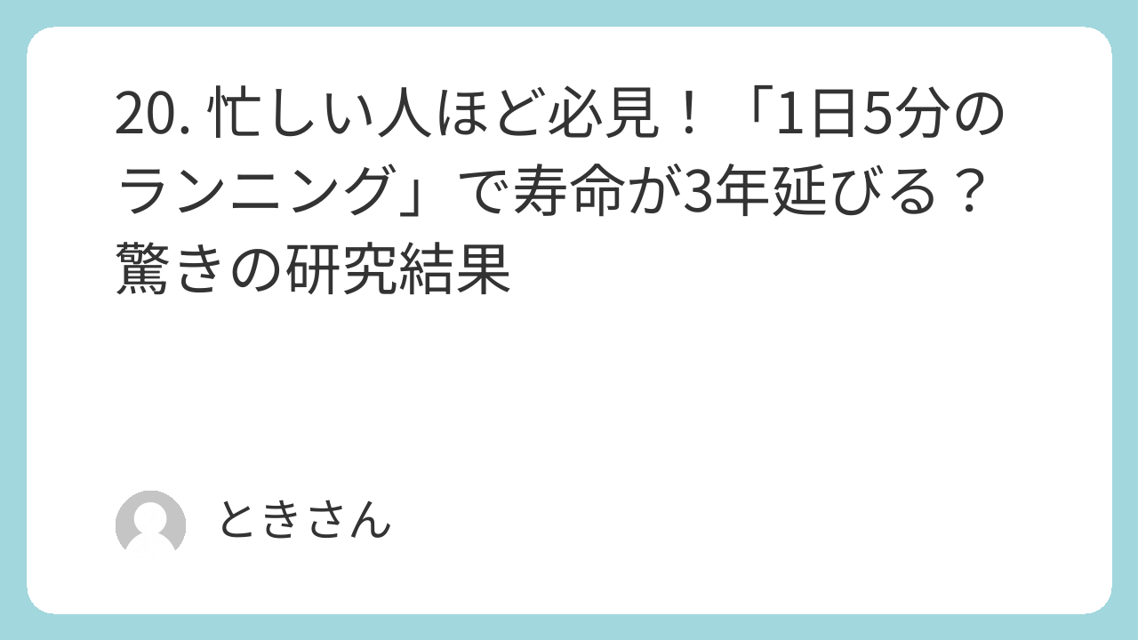 20. 忙しい人ほど必見!「1日5分のランニング」で寿命が3年延びる?驚きの研究結果