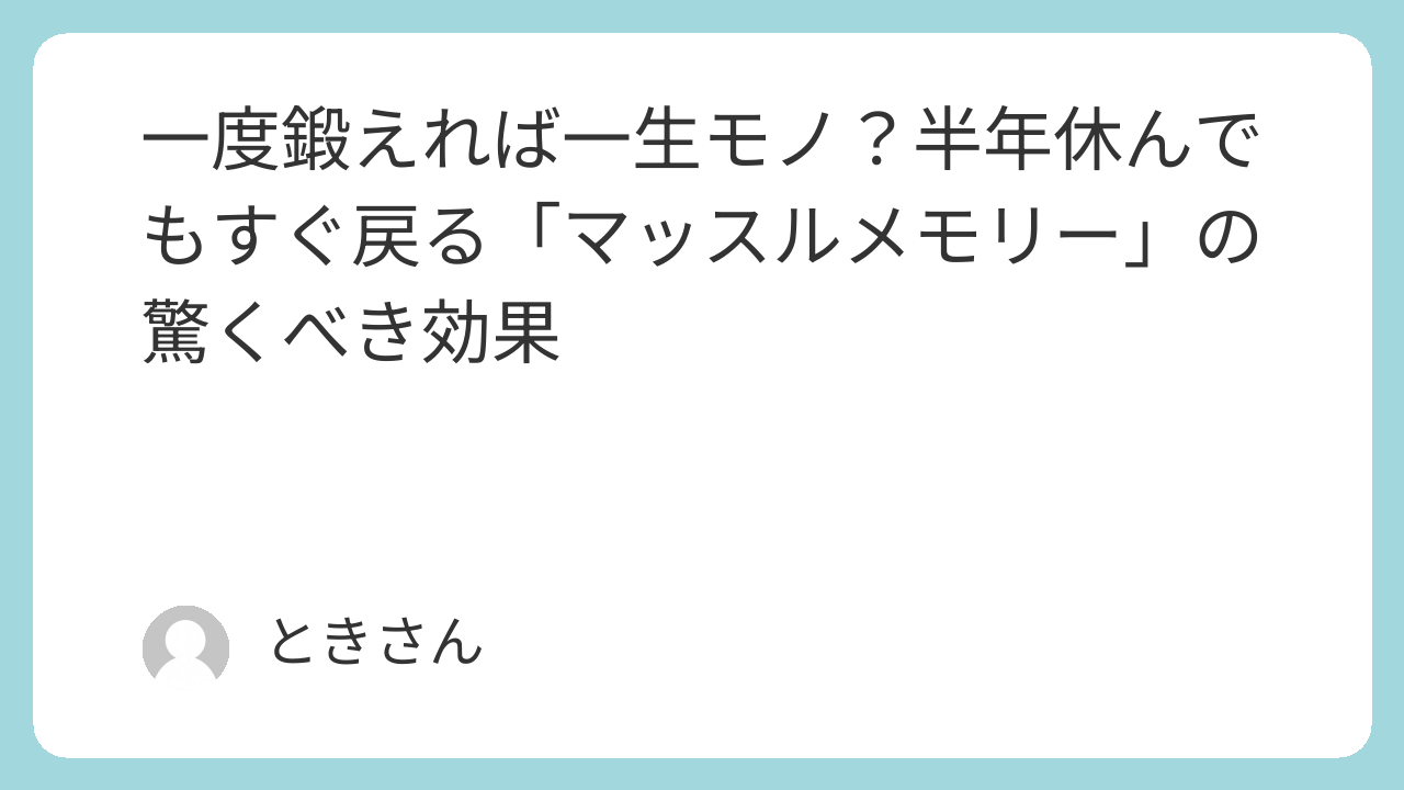 あなたがこれまで流してきた汗は、決してあなたを裏切りません。たとえ今、ブランクがあったとしても、あなたの体の中には「最強だった自分」の記録がしっかりと刻まれています。明日、一歩踏み出すだけで、その記憶は目を覚まします。筋肉の貯金(筋)を信じて、また今日からウェルビーイングなフィットネスライフを再開しましょう!