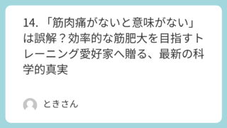 14. 「筋肉痛がないと意味がない」は誤解?効率的な筋肥大を目指すトレーニング愛好家へ贈る、最新の科学的真実